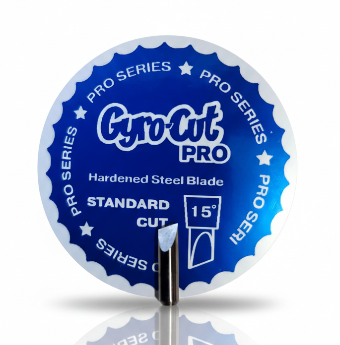 The standard-cut hardened blade is a craft blade for the Gyro-Cut® PRO tool. Ideal for papercrafts, scrapbooking, cutting paint masks, model graphics and decals. We recommend using this blade for cutting thin materials including all types of paper, thin card, sticky backed vinyls, masking tape, Tamiya tape, Mylar®/acetate, model covering films, photographs, signwriting vinyl and more.